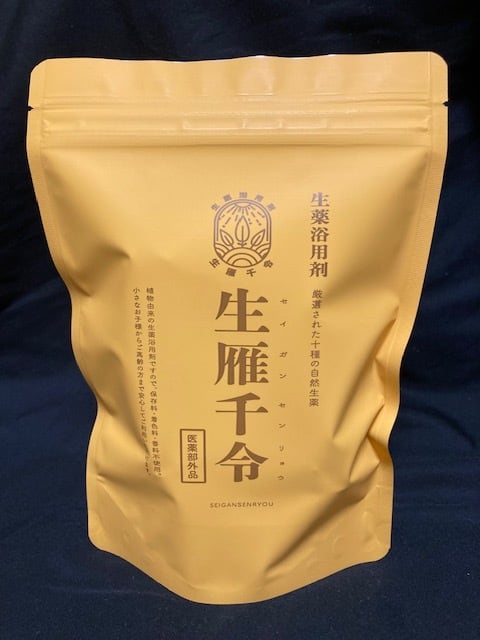 「生雁千令」(セイガンセンリョウ)は自然生薬100%の無添加浴用剤です。香りは生薬そのもの、浸透性が高い生薬であるトウキをはじめ、10種類の自然生薬がバランスよく配合されています。血行を促進し、身体をよくあたため、発汗を促し、温浴効果を高めてくれます。 お風呂にゆっくりと浸かり、心と体を休めてあげる時間は気持ちを前向きにしてくれるはずです。 副交感神経を働かせることで睡眠の質を高めます。 巷で販売されている入浴剤の成分をよく確認してみて下さい。それらの入浴剤の成分は、添加物だらけです。特に香りと色は人工の香料と着色料を使用しているものが多く見受けられますが、本品は、保存料・香料・着色料など一切使用しておりません。本物の生薬から溶け出したエキスが肌に触れることで、本物の薬湯であることを実感いただけます。